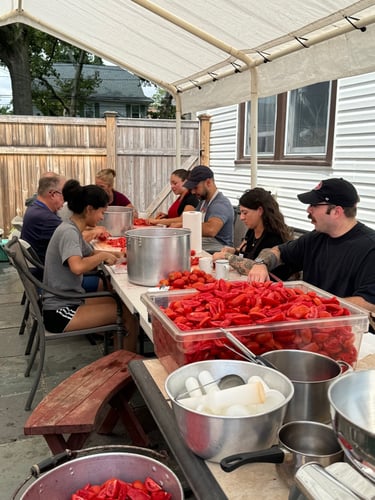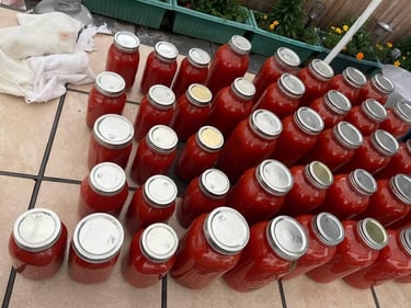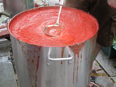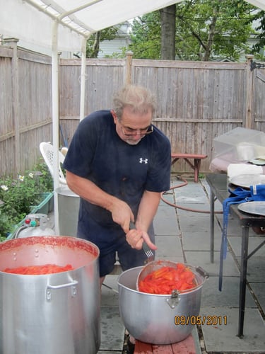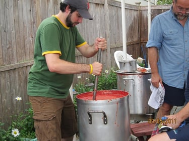 Every year when the tomato crop is harvested it's time to jar Joe's famous tomatoes. Bushels and jars and the latest nineteenth century technology come together in a labor of love.